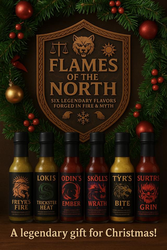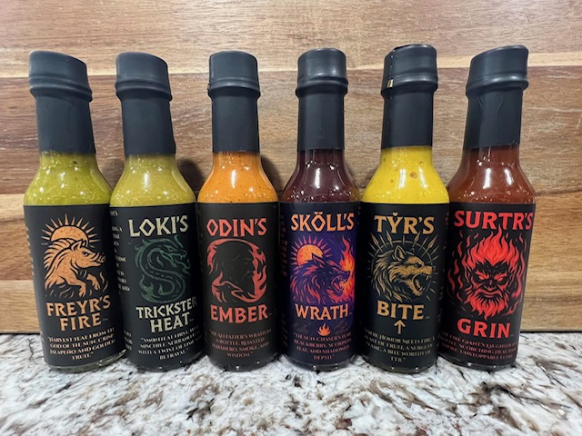 Born of smoke, embers, and Norse myth, this line carries the spirit of ancient stories — the wolves, the gods, and the fires that shape the Nine Realms. Each sauce is its own saga, forged with intent and bound to the powers that walk the old tales.